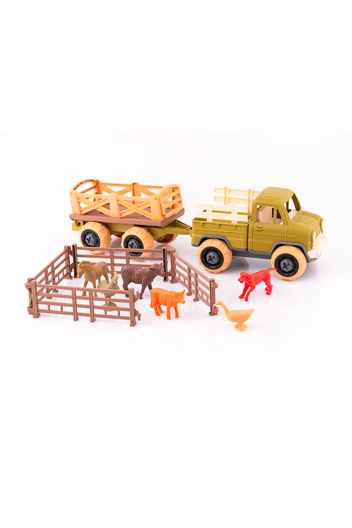 2’si 1 Çiftlik Oyuncağı –Sök Tak Kamyon Seti, 6 Hayvan & 4 Çit Dahil